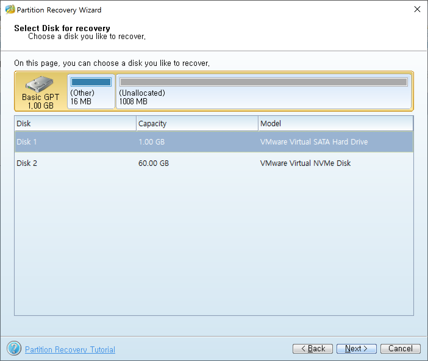 파티션 관리 도구에 파티션 복구 기능도 제공되는 것이어서 파티션 복구 위자드를 실행해야 한다.